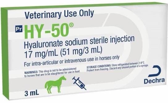 HY-50 VET is indicated for Intra-articular and intravenous treatment of lameness caused by joint dysfunction associated with non-infectious synovitis.
